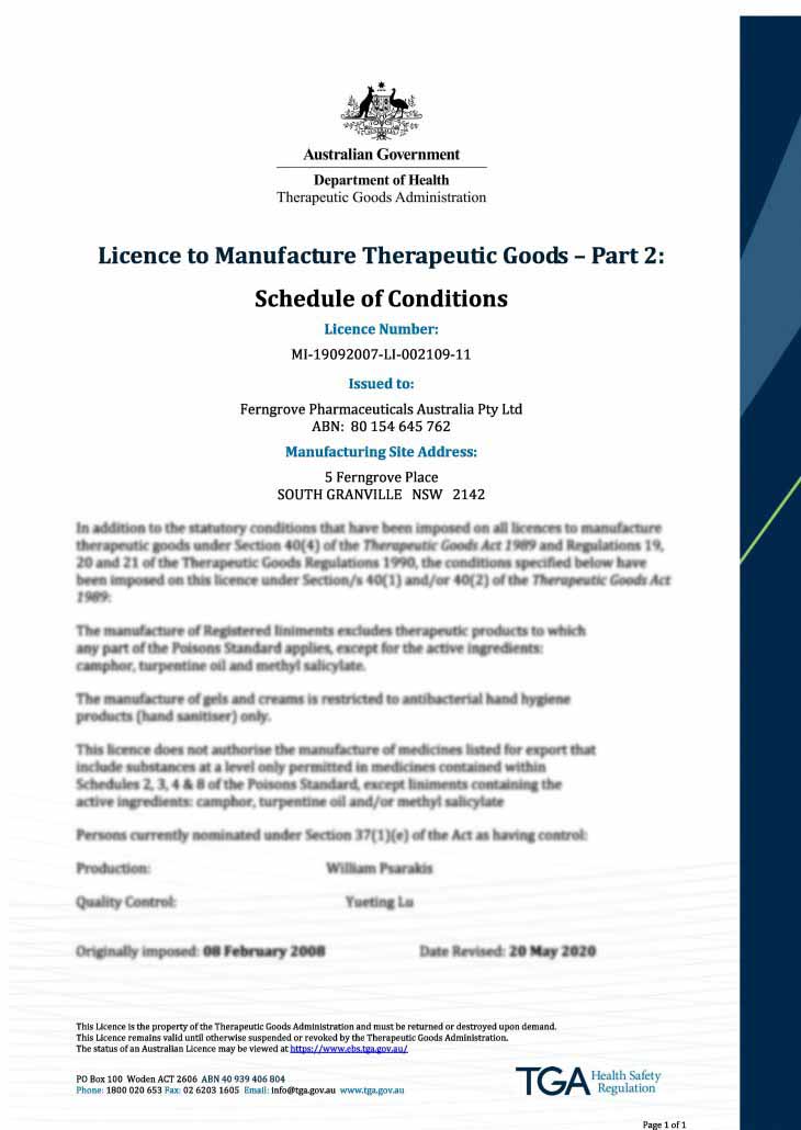 芬格药业(FERNGROVE PHARMACEUTICALS AUSTRALIA PTY LTD)位于澳大利亚悉市西南区的 TGA (Therapeutic Goods Administration) 注册的制造企业,隶属于澳药集团 (FPA GROUP) 旗下的公司,专门从事补充药品和保健食品、软糖和乳制品、化妆品、洗手液、宠物保健品。